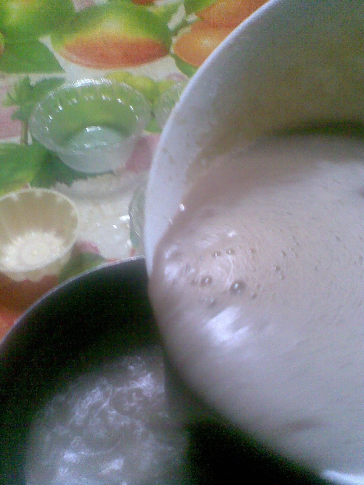 ثم نحط الخليط على نار هادئة مع التحريك حتى تعقدنحطها في اكواب و ندخلها للثلاجة تبرد ثم نقدمها والله تجي رائعة .