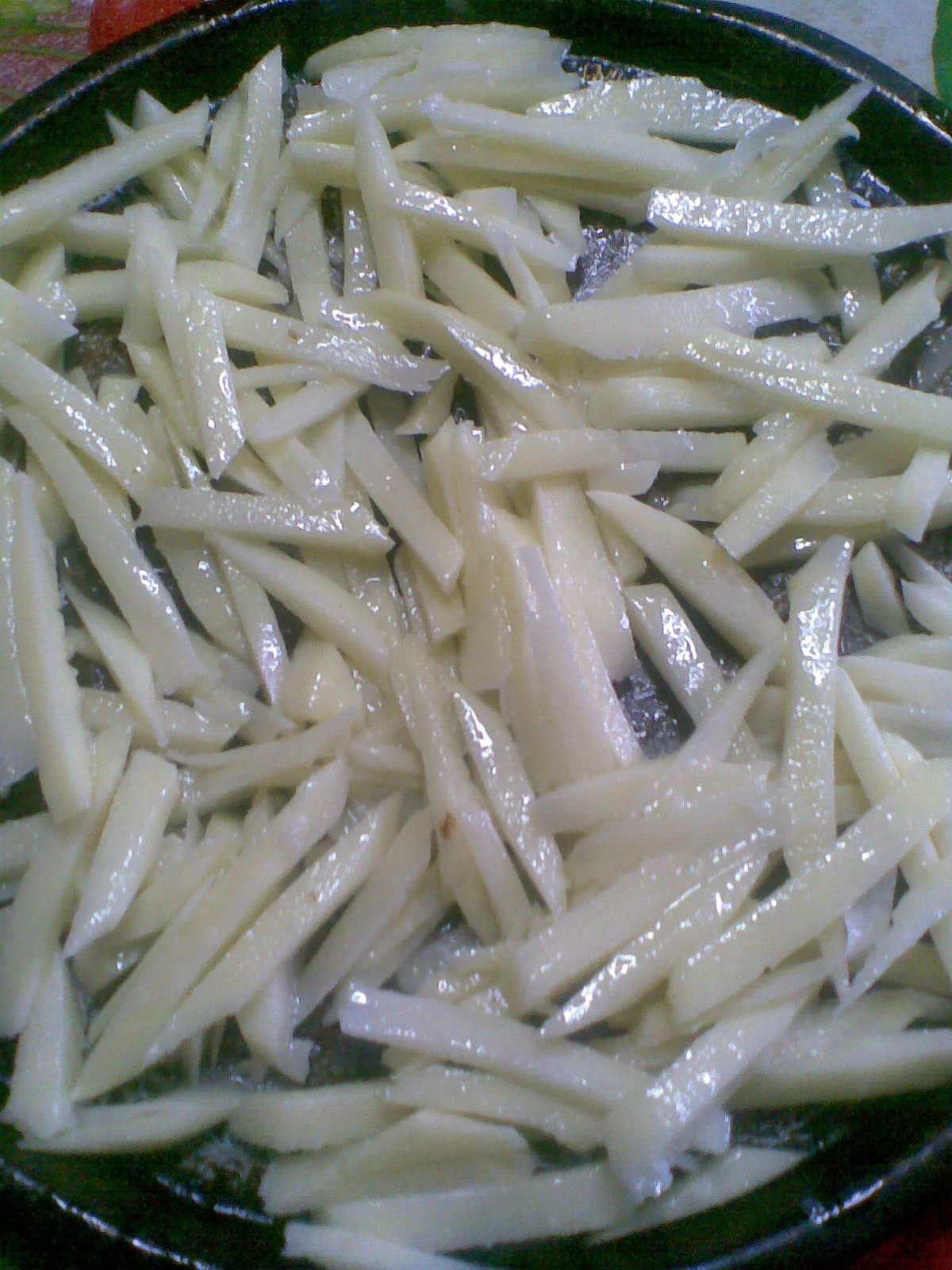 التحضير : تقطعي البطاطة عادي كيما ديال فريت ,تملحيها و ديريلها مغرف زيت وخلطيها وحطيها في سنيوة مدهونة بالزيت و دخليها تتحمر في الفرن مرة على مرة قلبيها حتى تتحمر نتمنى تعجبكم.